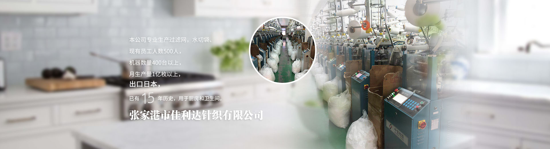 張家港市佳利達(dá)針織有限公司地處田垛里二區(qū),北依南通港,東傍上海港,與蘇錫常地區(qū)接壤,地理位置優(yōu)越,水陸交通便利。現(xiàn)有員工人數(shù)500人,機器數(shù)量400臺以上,月生產(chǎn)量1億枚以上。公司專業(yè)生產(chǎn)水切網(wǎng)、滌綸網(wǎng)袋、垃圾過濾袋、無紡布網(wǎng)袋、水槽過濾袋、水槽水切袋、不銹鋼水槽網(wǎng)、廚余過濾、廚房衛(wèi)生清潔用品等,出口日本已有15年歷史,用于廚房和衛(wèi)生間,產(chǎn)品暢銷上海、廣州、深圳、南京、蘇州、無錫、常州等全國各地。